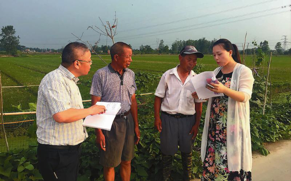 从今年起,盐城市启动“正风肃纪镇村行”专项行动。图为基层纪检监察干部深入田间地头摸排扶贫领域问题线索。
