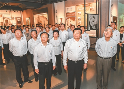 根据省委常委会“不忘初心、牢记使命”主题教育安排,6月13日,省委常委同志用一整天时间在周恩来总理家乡淮安开展现场学习,集体瞻仰周恩来纪念馆,接受周恩来精神熏陶教育,并进行专题研讨。省委书记、省委主题教育领导小组组长娄勤俭主持现场学习,他强调,周恩来同志是我们共产党人的光辉典范,我们开展“不忘初心、牢记使命”主题教育,要把学习弘扬周恩来精神作为主题教育的重要内容,不断从中感悟初心使命、汲取前行力量,团结带领全省干部群众把习近平总书记为我们描绘的“强富美高”宏伟蓝图化为美好现实。
