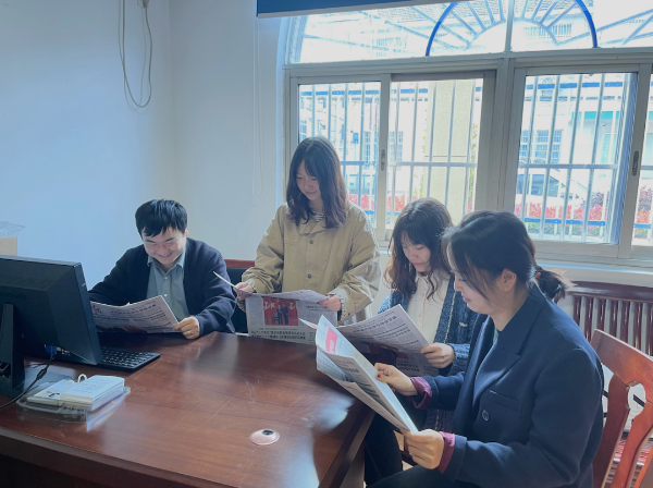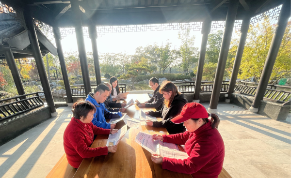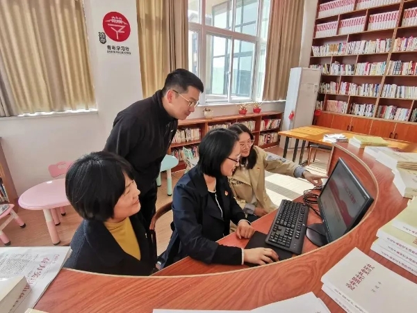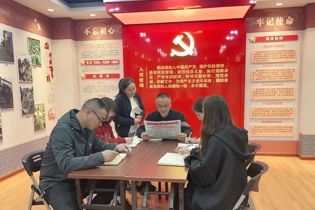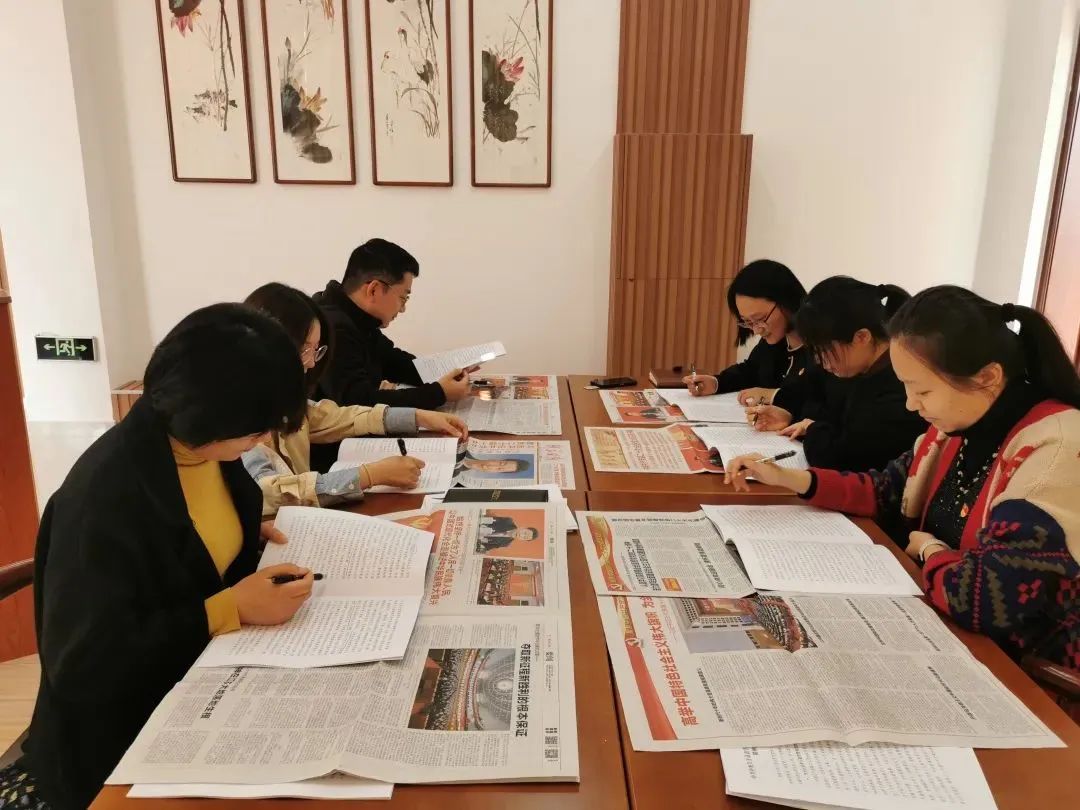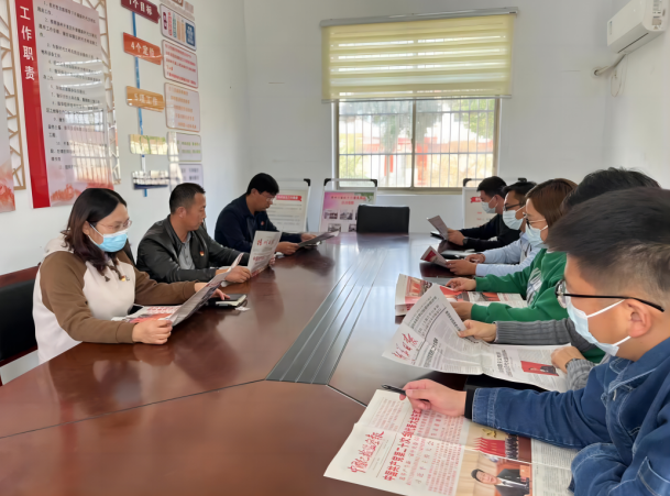 ▲生态科技新城泰安镇纪检干部学习讨论党的二十大精神。