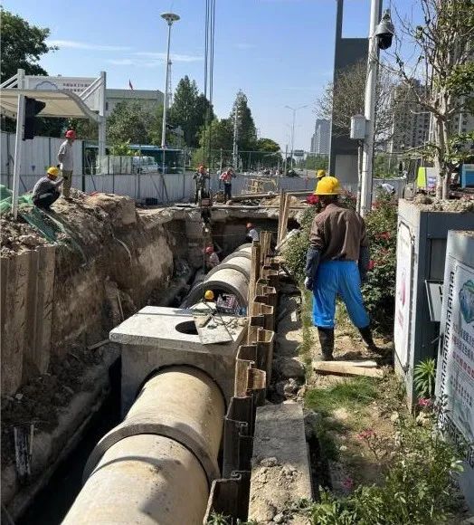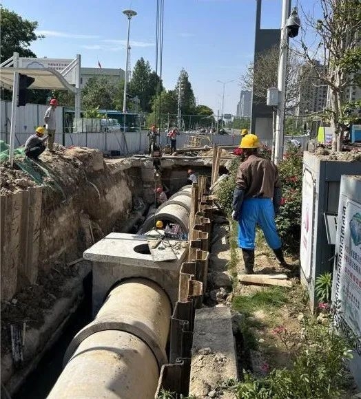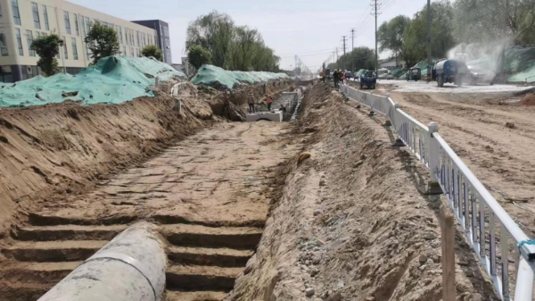 (施工现场)该区还举一反三,全面开展管网、设备隐患排查。在今年汛期来临之前,完成了雨水管网养护308公里,清理雨水蓖、雨水井10530余座,清淤6.2万立方,更换破损井盖460余座……