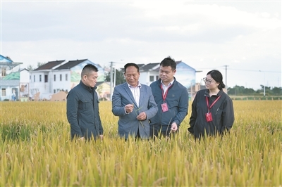 江苏省江阴市纪委监委紧盯惠农政策落实、农资保障供应、粮食收储安全等方面,深入一线开展监督检查,严查严纠损害群众利益问题。图为近日,该市纪检监察干部在长泾镇蒲市村水稻种植地了解相关情况。顾颖洁 摄