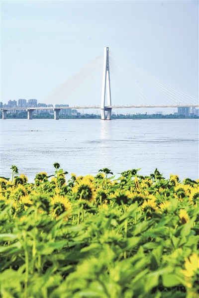 图③:7月14日,湖北省武汉市青山区,长江江滩边向日葵绽放。图片来源:视觉中国