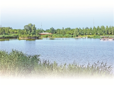 图①:7月13日,北京温榆河公园内的沁湖。本报记者 王雅婧 摄