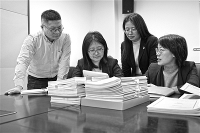 图为南京江北新区纪检监察工委工作人员围绕案情进行研讨。 周青 摄