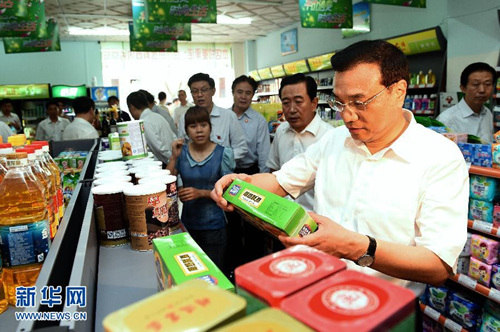 4月11日,李克强在海口市随机走进路边小超市,了解本地产品种类、销售等情况,并买了两袋当地产的小食品。 (刘建生 摄)