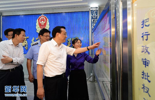 4月11日,李克强在海口市工商局考察。(刘建生 摄)