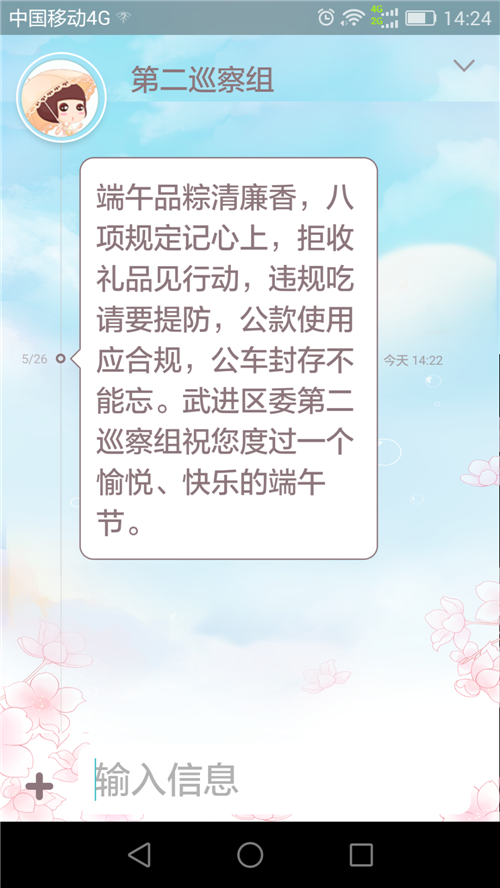 图为区委第二巡察组向被巡察单位全体干部职工发送的廉洁过节短信