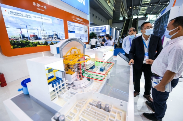 发挥新型举国体制优势,增强科技创新活力,积极回应经济社会对科技发展提出的新要求,把创新驱动发展落到实处。图为参观者在第二十二届中国国际高新技术成果交易会上了解我国自主三代核电技术“华龙一号”。 新华社记者 毛思倩 摄