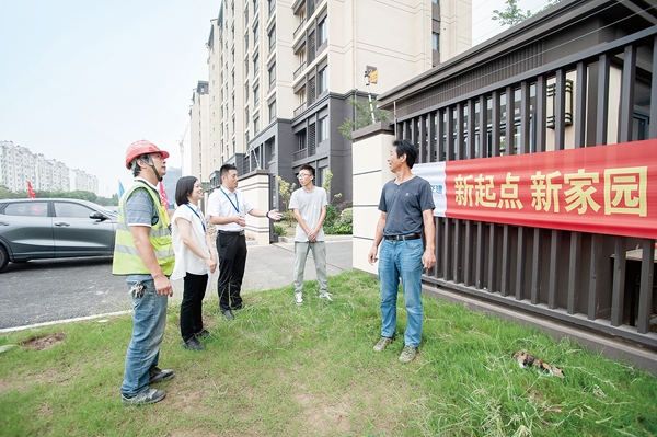 江苏省张家港市纪委监委紧盯安置房领域突出问题加强监督检查,深入查找拆迁安置补偿、安置房建造、选房程序等重点环节的风险漏洞,全力服务保障民生。图为近日,该市纪检监察干部在某新建拆迁安置小区走访了解有关情况。陈东 摄