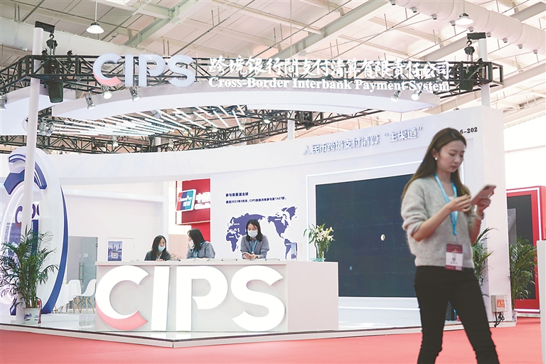 人民币跨境支付系统(简称CIPS系统)是经人民银行批准专司人民币跨境支付清算业务的批发类支付系统,致力于提供安全、高效、便捷和低成本的资金清算结算服务,是我国重要的金融市场基础设施。图为北京首钢会展中心CIPS跨境银行间支付清算有限责任公司展台。图片来源:视觉中国