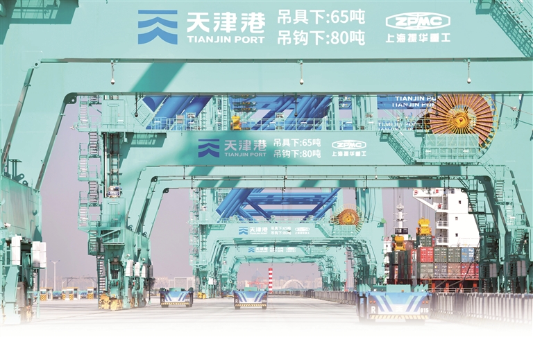 在全球首个“智慧零碳”码头——天津港北疆港区C段智能化集装箱码头,风力发电机的叶片在海风中徐徐转动,光伏板在阳光下闪闪发光,为码头输送着绿色电能。天津港北疆港区C段智能化集装箱码头是全球首个100%使用风电、光伏等绿色电能且自产自足的“零碳”码头,建立了“风光储荷一体化”的新能源发电系统。同时,为了更好地对空气污染进行监测,港区还建立了智能监测平台,100多个监测点可以对空气进行24小时动态监控,一旦出现污染源便会实时发出预警,这些举措都让码头的环境变得更加洁净。