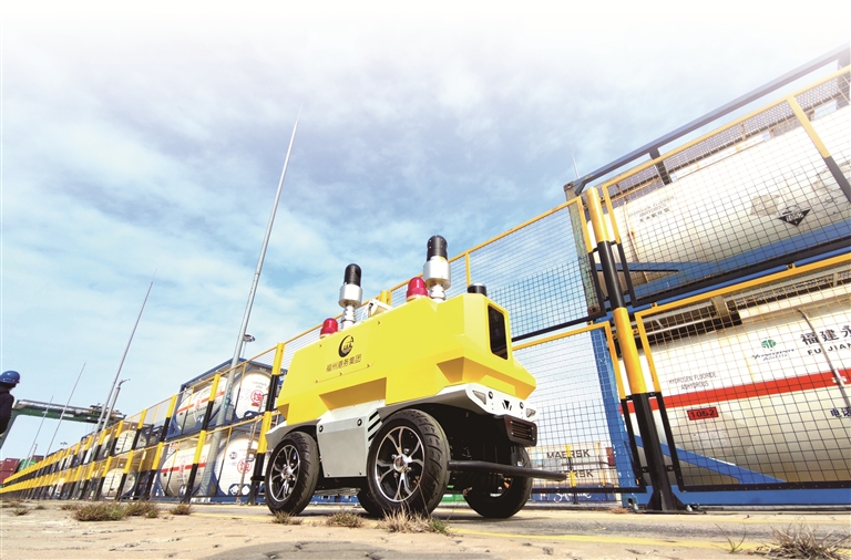 5G智能巡检机器人在福州港江阴港区危货集装箱堆场巡检作业。福州港务集团有限公司 供图