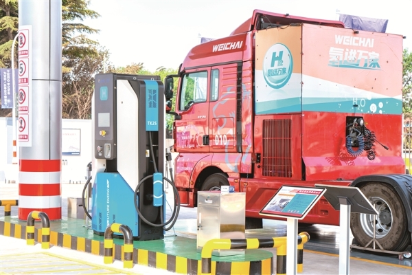 车辆在山东港口青岛港内的加氢站补充氢燃料。资料图片