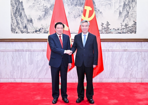 11月12日,中共中央政治局常委、中央纪委书记李希在北京会见由越南共产党中央政治局委员、中央书记处书记、中央内政部部长潘庭濯率领的代表团。 新华社记者 岳月伟 摄