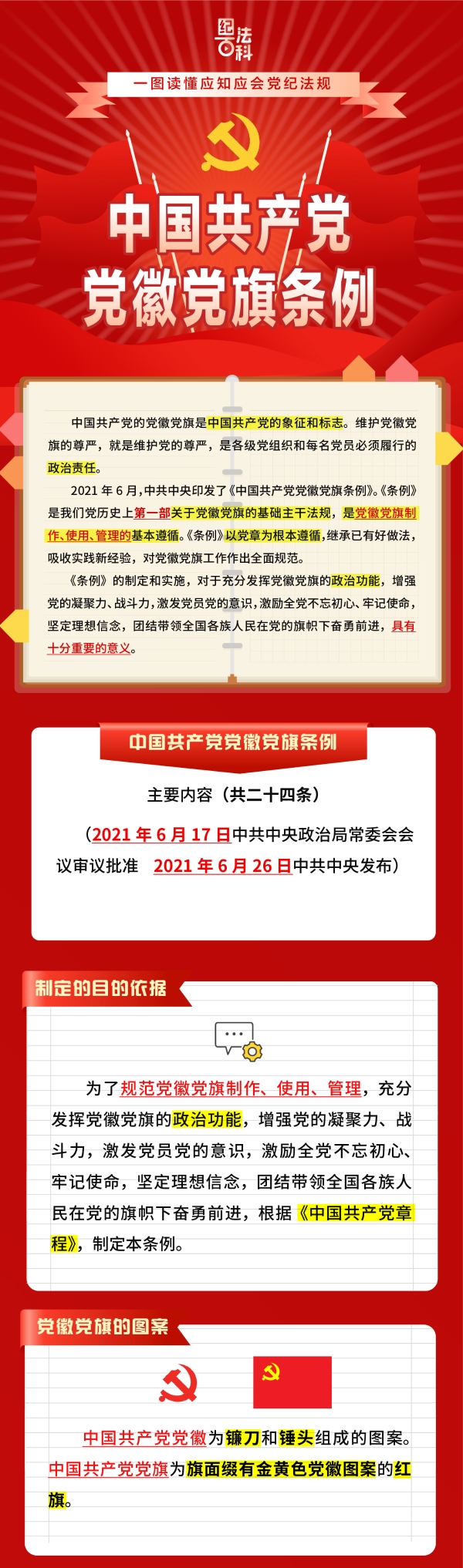 纪法百科·一图读懂应知应会党纪法规中国共产党党徽党旗条例