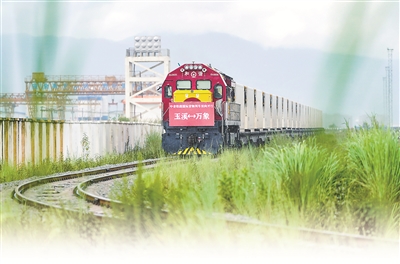 8月23日,前往老挝万象的国际货物列车驶出中老铁路中国玉溪研和站。当日,中老铁路国际货物列车(玉溪—万象)实现双向开行。新华社记者 陈欣波 摄