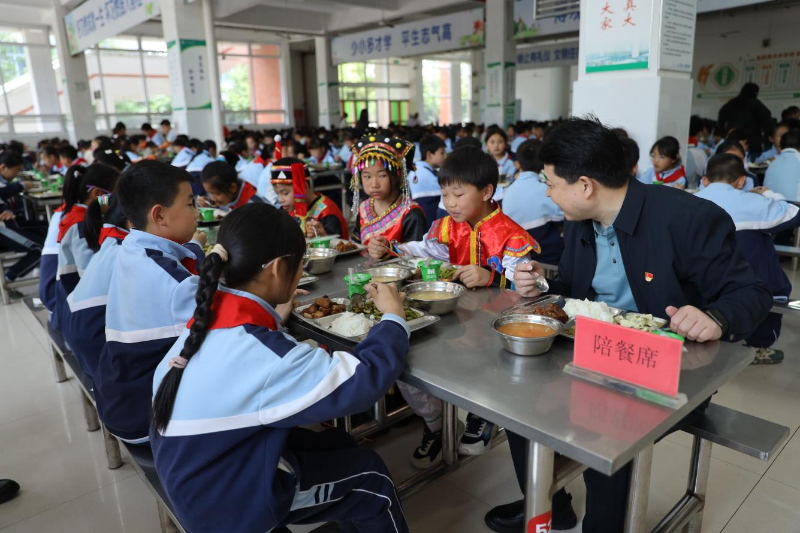 海安市纪委监委深化“陪餐式”监督,组织纪检监察干部、特约监察员、家长代表与学生同进食堂、同窗打菜、同桌用餐,深入了解“校园餐”情况。(杨春月 摄)