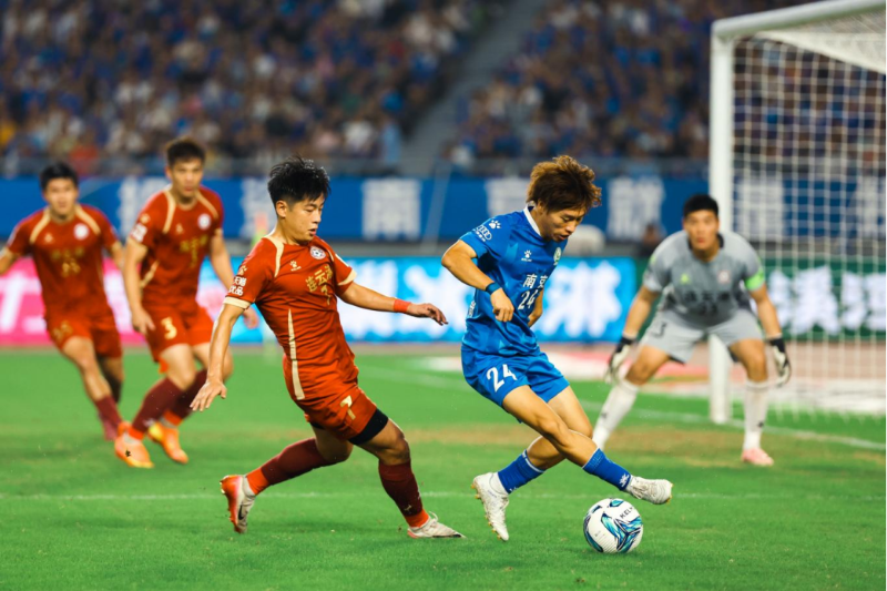 2025年10月4日晚,“苏超”淘汰赛首战,南京队与连云港队上演焦点对决。(章晓飞 摄)