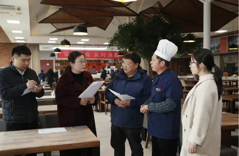 淮阴师范学院纪检监察干部深入食堂了解工作开展情况。(赵启瑞 摄)
