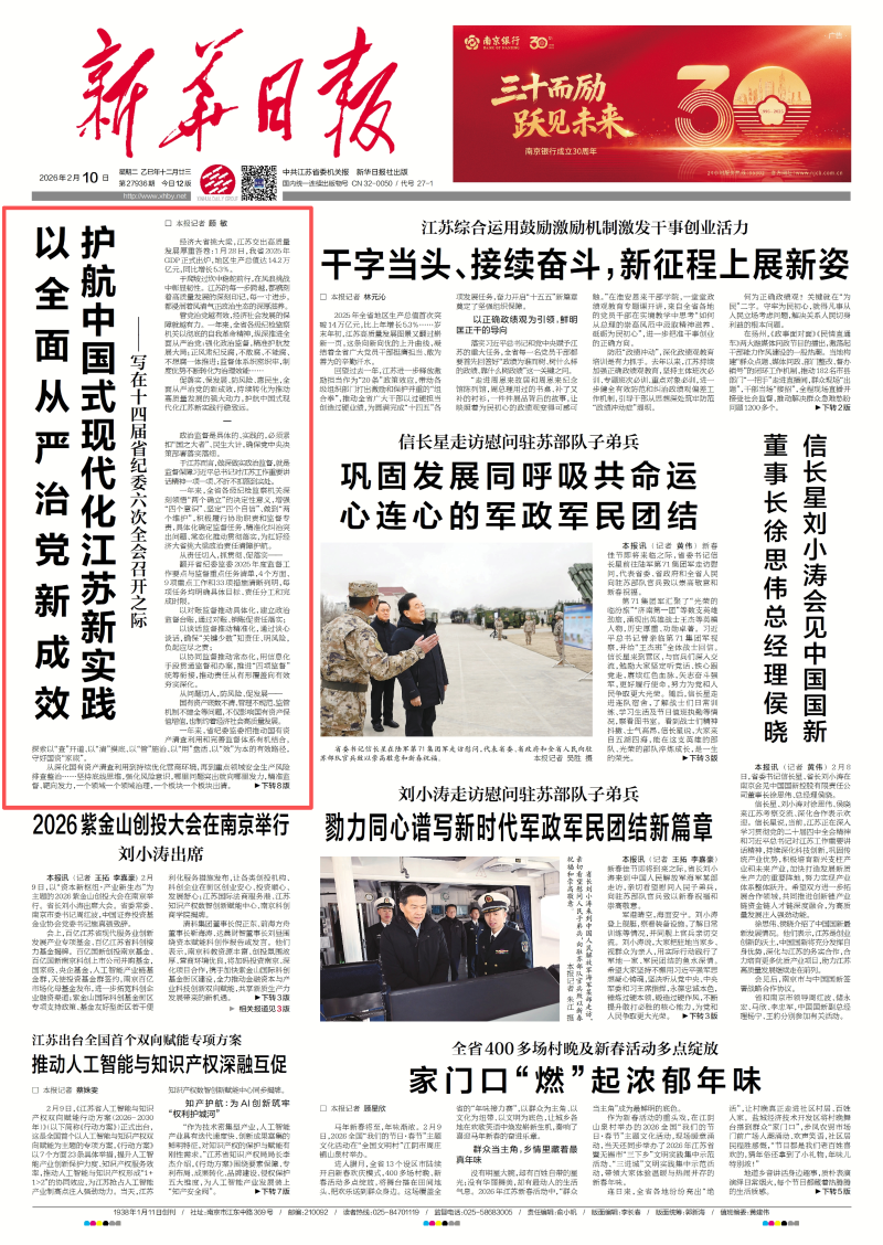 促落实、保发展、防风险、惠民生,全面从严治党的新成效,持续转化为推动高质量发展的强大动力,护航中国式现代化江苏新实践行稳致远。