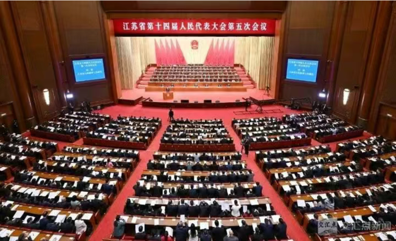 上午9时45分,信长星宣布:江苏省第十四届人民代表大会第五次会议开幕。全体起立,奏唱中华人民共和国国歌。