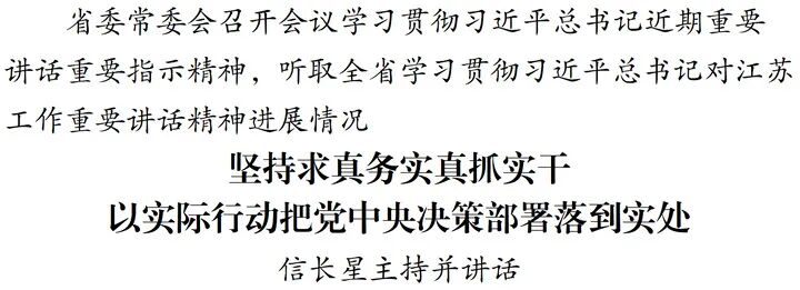 2月28日,省委常委会召开会议,学习贯彻习近平总书记近期重要讲话重要指示精神,听取全省学习贯彻习近平总书记对江苏工作重要讲话精神进展情况,研究部署相关工作。省委书记信长星主持会议并讲话。