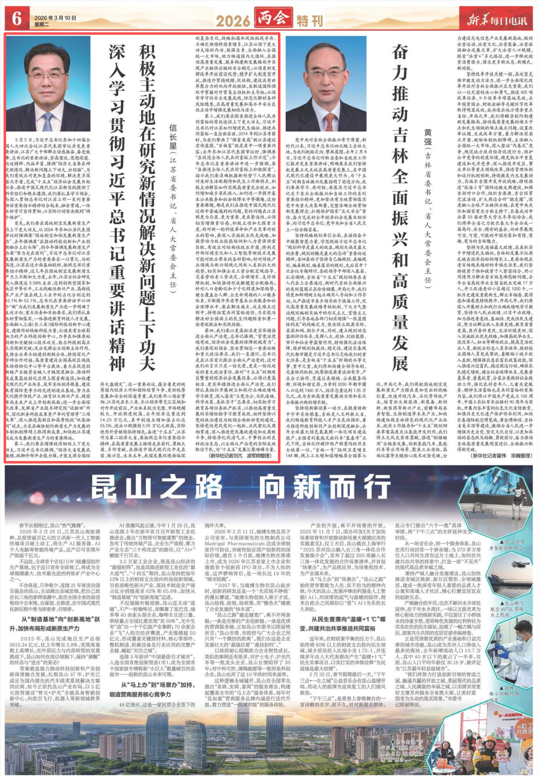 3月5日,习近平总书记参加十四届全国人大四次会议江苏代表团审议并发表重要讲话,江苏广大干部群众倍感振奋、备受鼓舞。总书记的重要讲话,登高望远、思想深邃、论述精辟、内涵丰富,强调“经济大省要在研究新情况、解决新问题上下功夫、出经验”,为我们有效应对更加复杂的环境、解决更多深层次矛盾,完成“十五五”经济社会发展目标任务,推进中国式现代化江苏新实践提供了科学指引和根本遵循。我们要认真学习领会,与深入贯彻总书记对江苏工作一系列重要讲话重要指示精神结合起来,融会贯通,一体抓好学习宣传贯彻,以实际行动坚决做到“两个维护”。