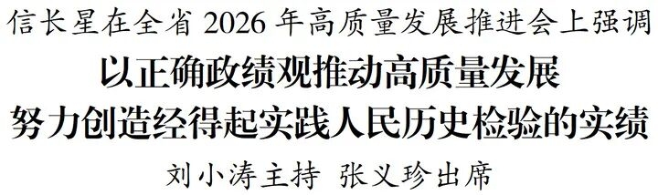3月19日,省委、省政府召开全省2026年高质量发展推进会。省委书记信长星出席会议并讲话。他强调,要深入学习贯彻习近平总书记对江苏工作重要讲话精神,引导广大党员、干部更加自觉地以正确政绩观推动高质量发展,努力创造经得起实践、人民、历史检验的实绩,为全国发展大局多作贡献。省长刘小涛主持会议,省政协主席张义珍出席会议。